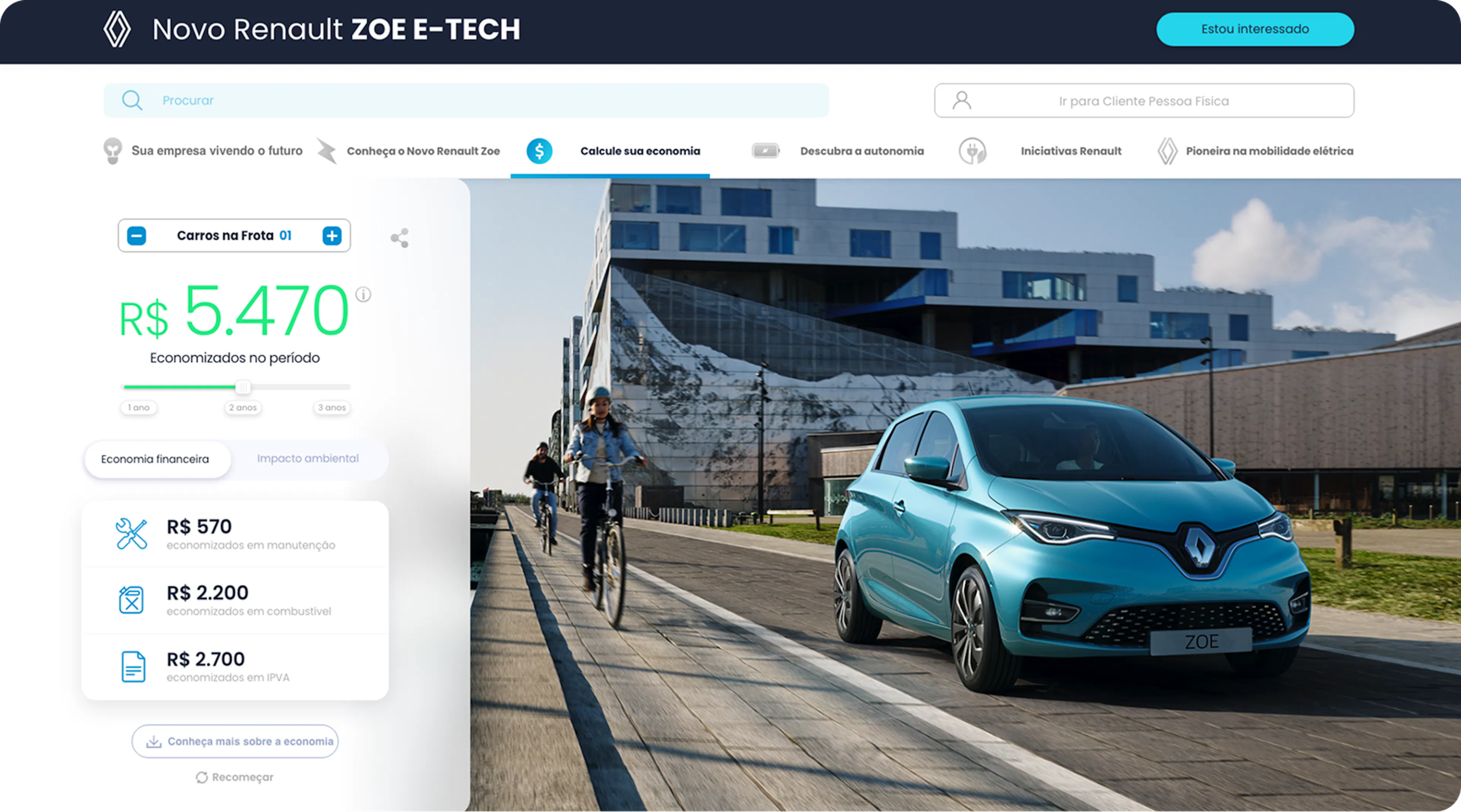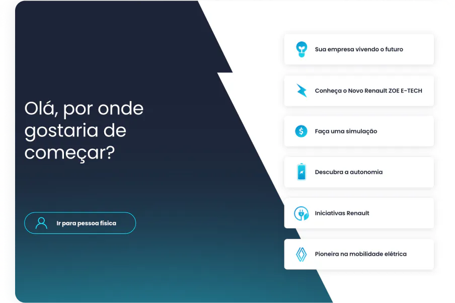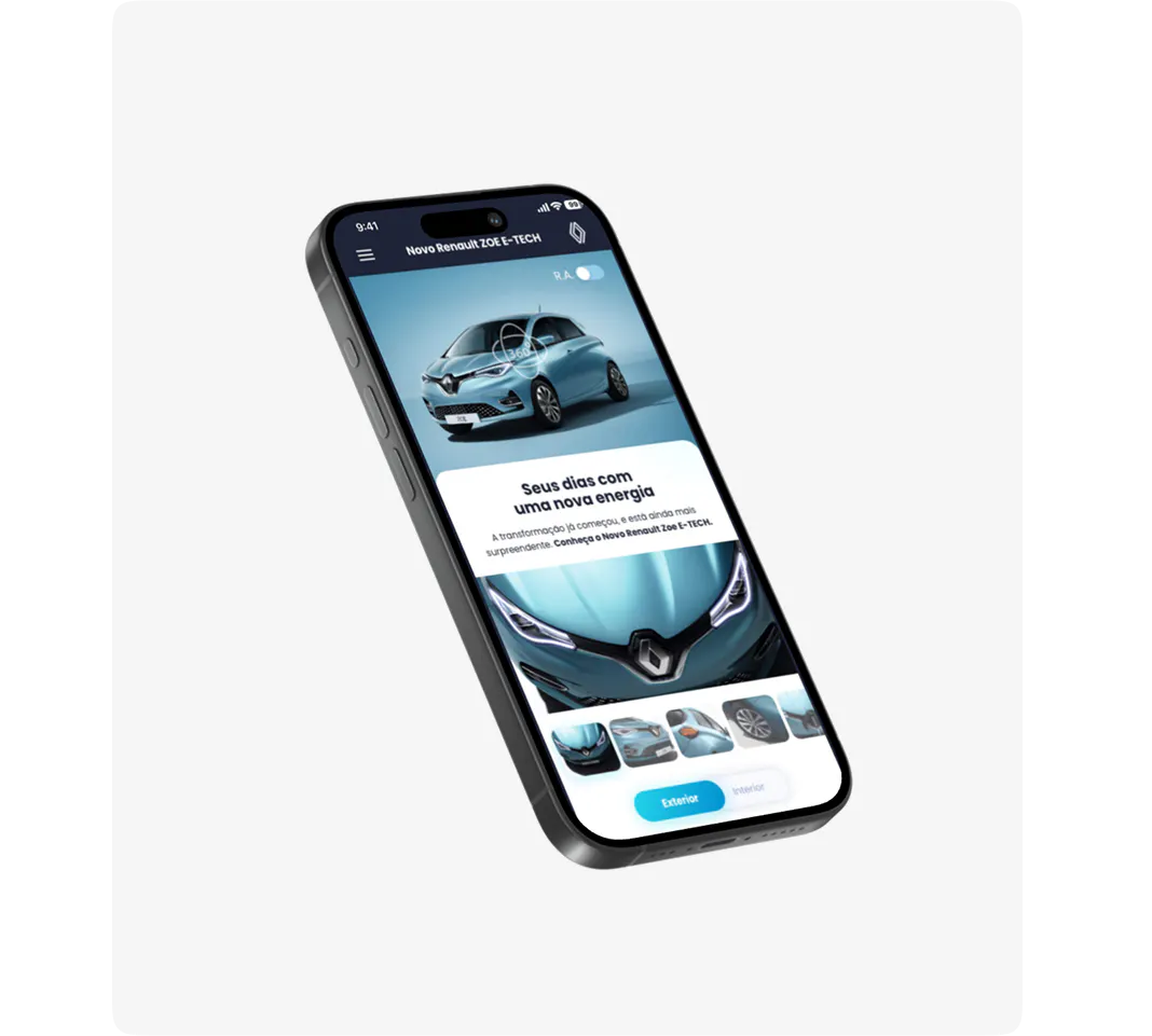 Na jornada do usuário pré-mapeada com a equipe da DMSBOX desenvolvemos um site fluído pensando em todos os pontos de contato, para que o usuário tivesse uma experiência única com foco em visualizar, interagir com todos os aspectos que fazem o Renault Zoe um carro único.